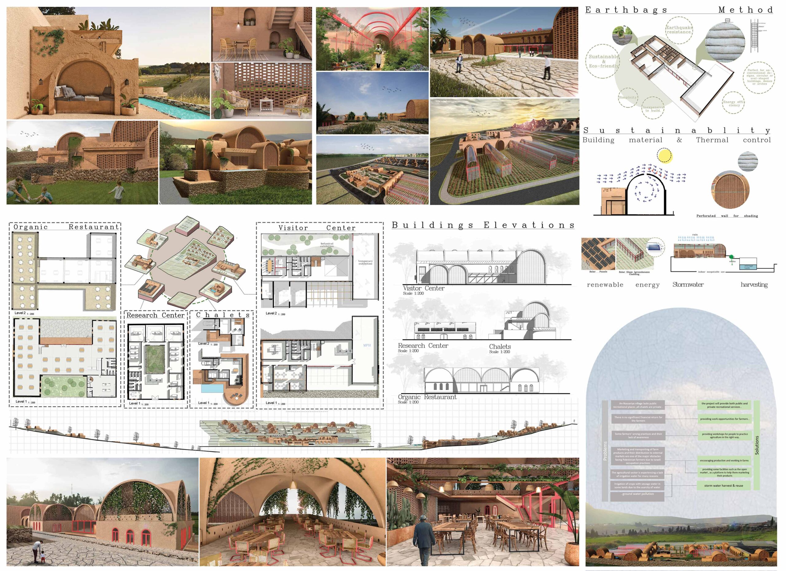 As long as this project concentrates on reviving the original agricultural nature of the village, it mainly focuses on land and its value. Several methods were used in this project to make it sustainable and reduce the negative effects on the environment. Such as the use of local and sustainable building materials, using many thermal control methods in buildings, using solar energy, and a system of stormwater harvesting.