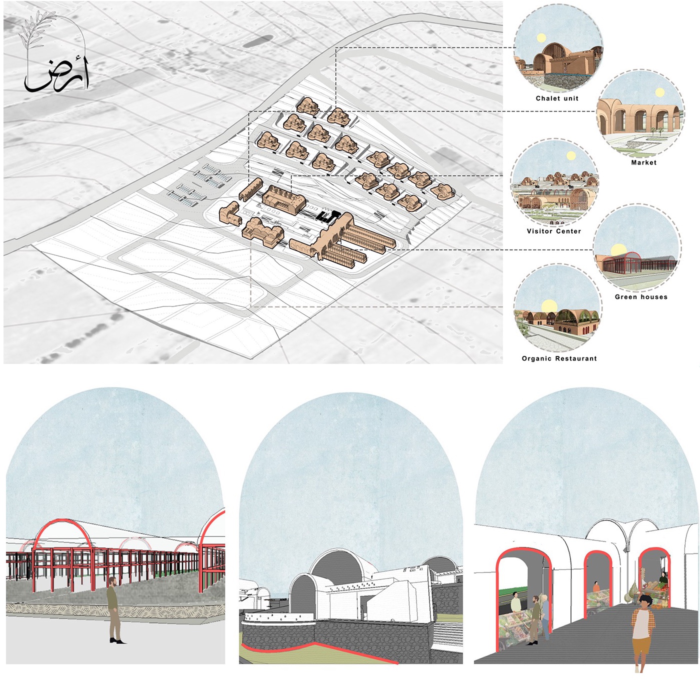 The main concept is to reflect the Palestinian agricultural scene, but in a contemporary way, and emphasize the significance of the land. By imitating the distribution of the traditional agricultural village, inspiring from the local typology “Earthen Architecture “, and using some of the main features of Palestinian agriculture such as the use of stone chains and step farming.