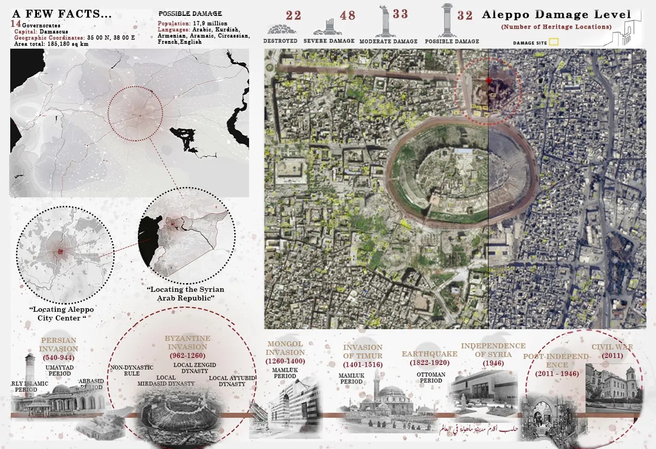 The project occupies the old Prison Land north of Aleppo’s Citadel—a deliberately chosen site that leverages the city’s historic presence as the starting point for a comprehensive civic revival. The site was analyzed through visual axes and the influence radius of nearby ancient gates and citadel alignments, treating the ground not as an empty lot but as an archive of collective memory and an opportunity to reconnect people with place.