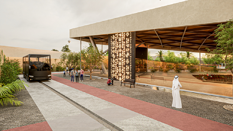 Because there are areas of antiquities in the excavation stages so far, so in order not to affect the taboos of the antiquities, the path around them was raised on a light structure bridge with columns only 4 meters high, so as not to affect the facade of the ziggurat , and it’s provided with electric cars that transport tourist from the project core to the ziggurat