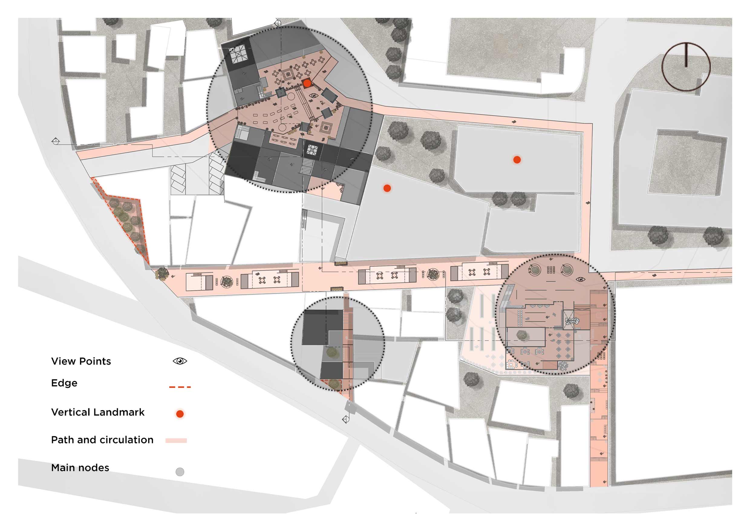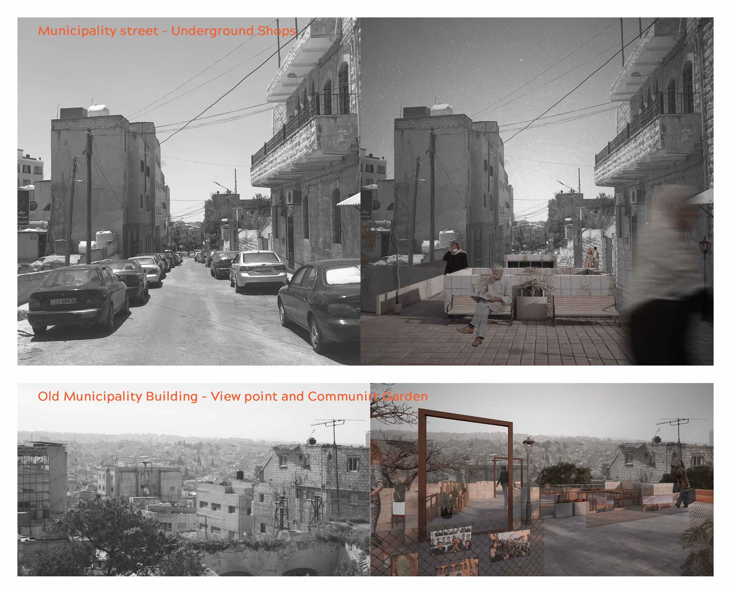 The project is divided into three main sections, the old municipality building (adaptive reuse building) and its surroundings including (municipality stairs and municipality street).