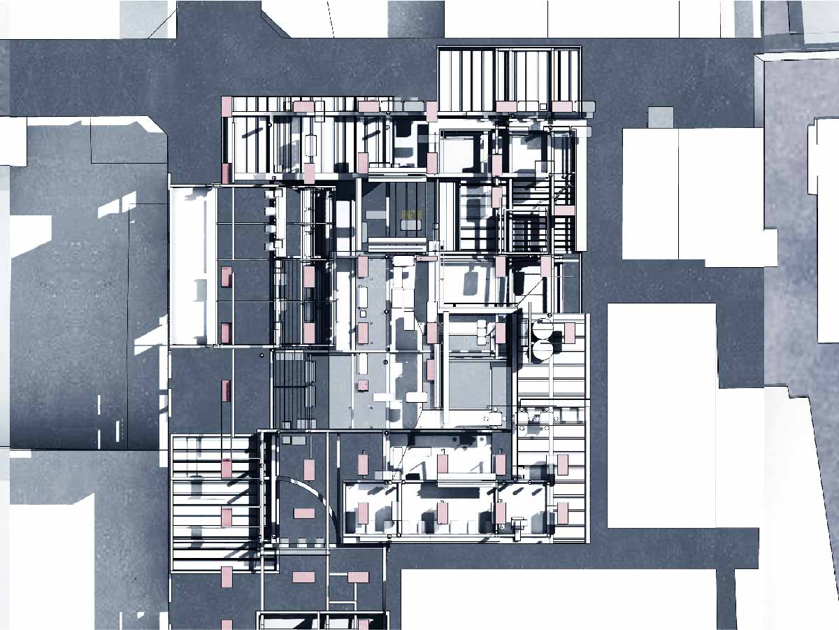 The site is the earliest developed street in Taipei which is named the Taipei First Street – Guiyang Street. In the context of history, the fascinating factors are hidden in the block around the Zhi-Xing market-facing erasure and rewriting. The post-market design provides an urban machine that can store the established memory of the market and continue to influence future life. To improve the variability of the ground floor of the city, I transformed the information rewritten in the city into layers of roofs: