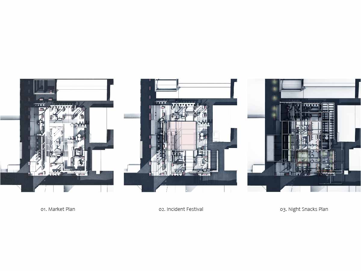 On the first layer of roofs, the memory of the city in the past is translated into the aftermarket language of MEP, which provides the behavioural logic of the street vendors in the next era.