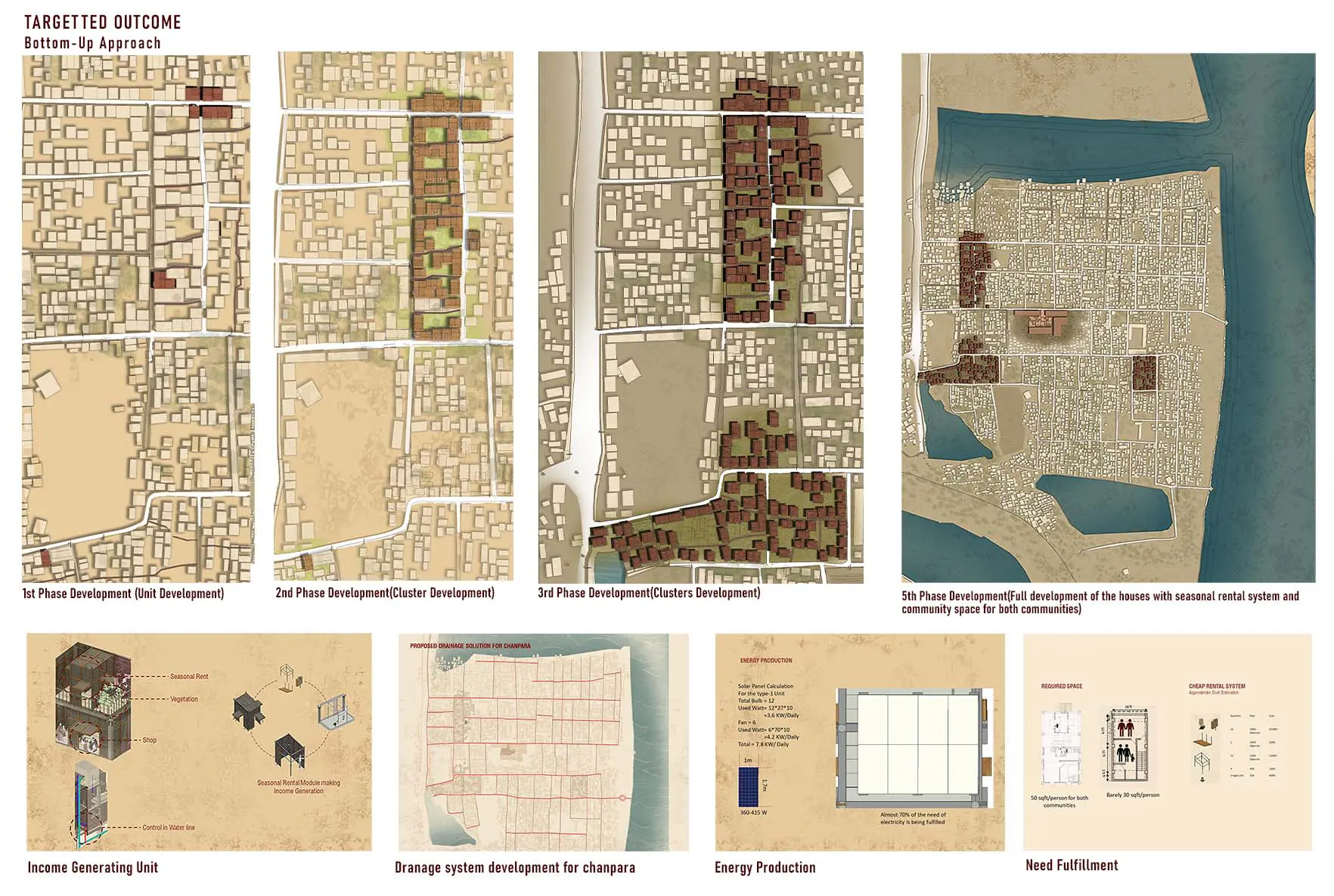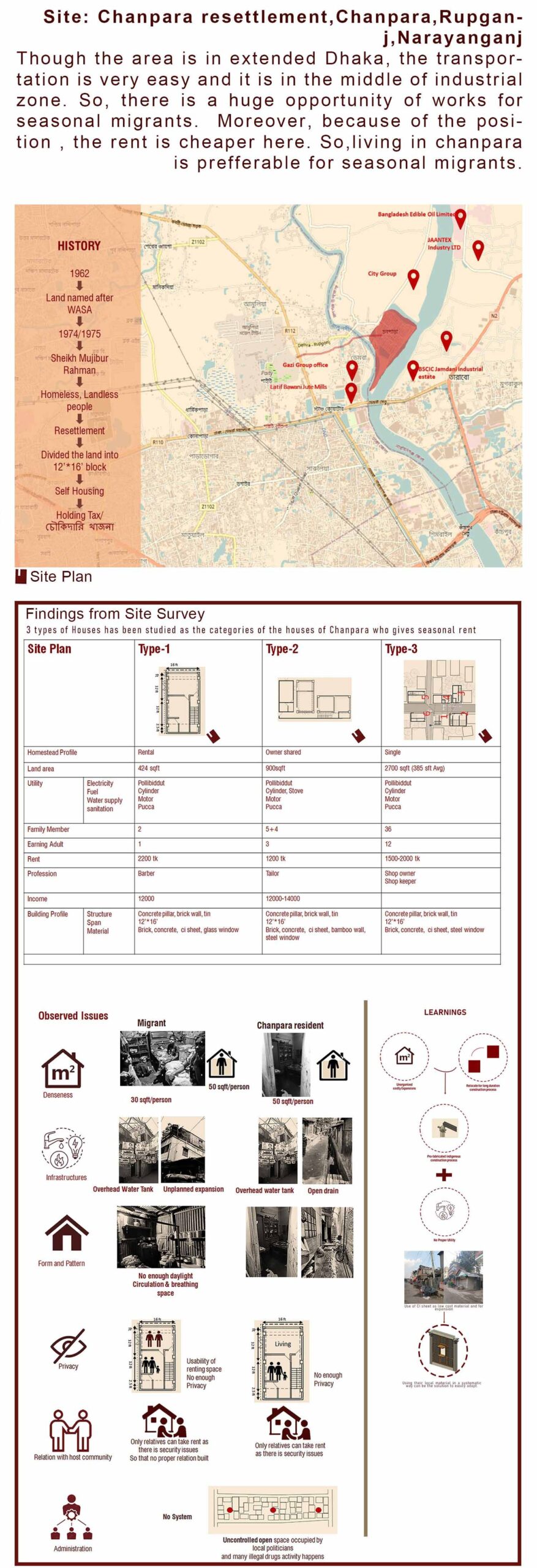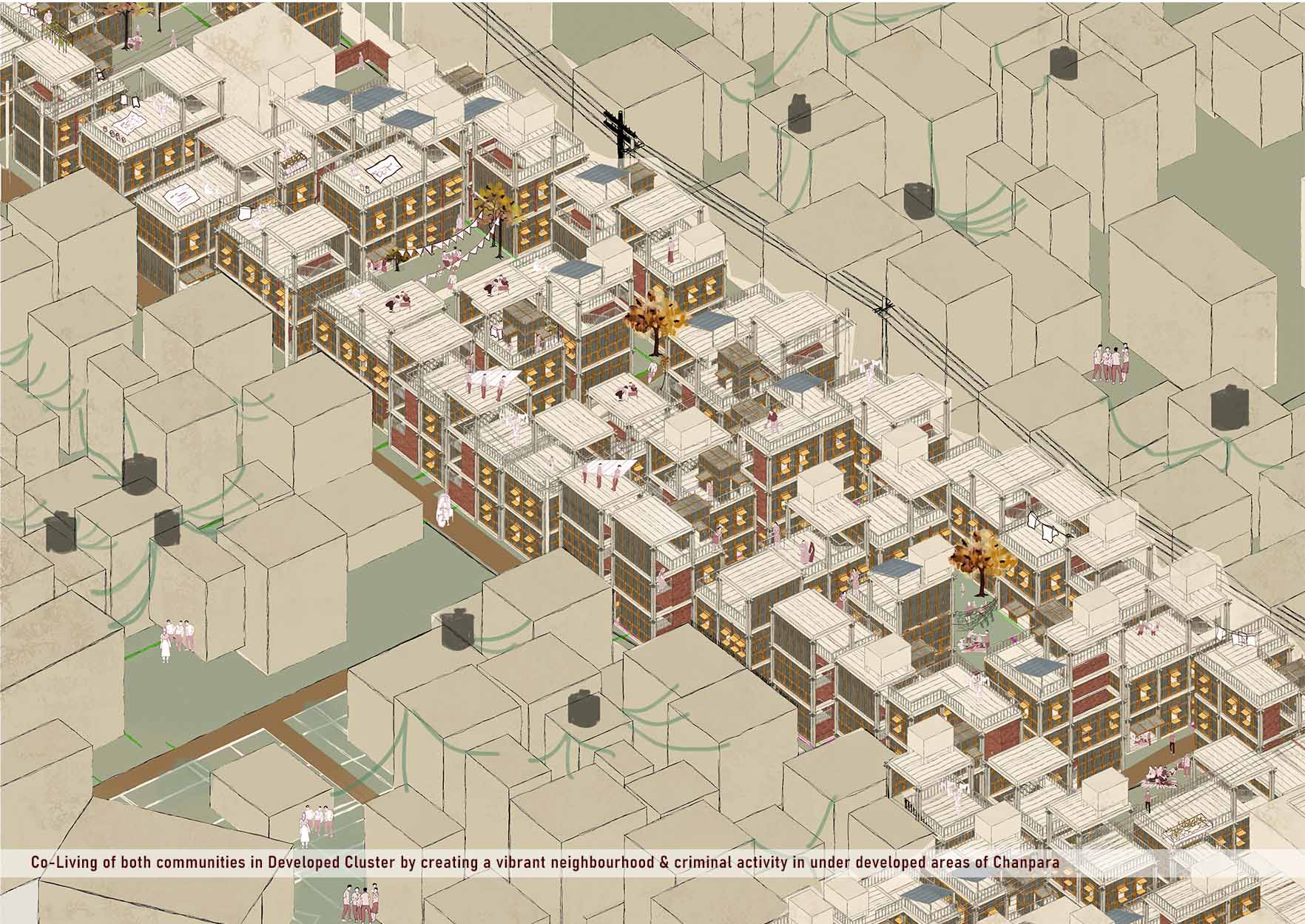 Design Consideration:  The existing plot size and lifestyle have to be same with better living condition. The problems of existing Chanpara inhabitants with extreme criminal activity of the area has to be removed.