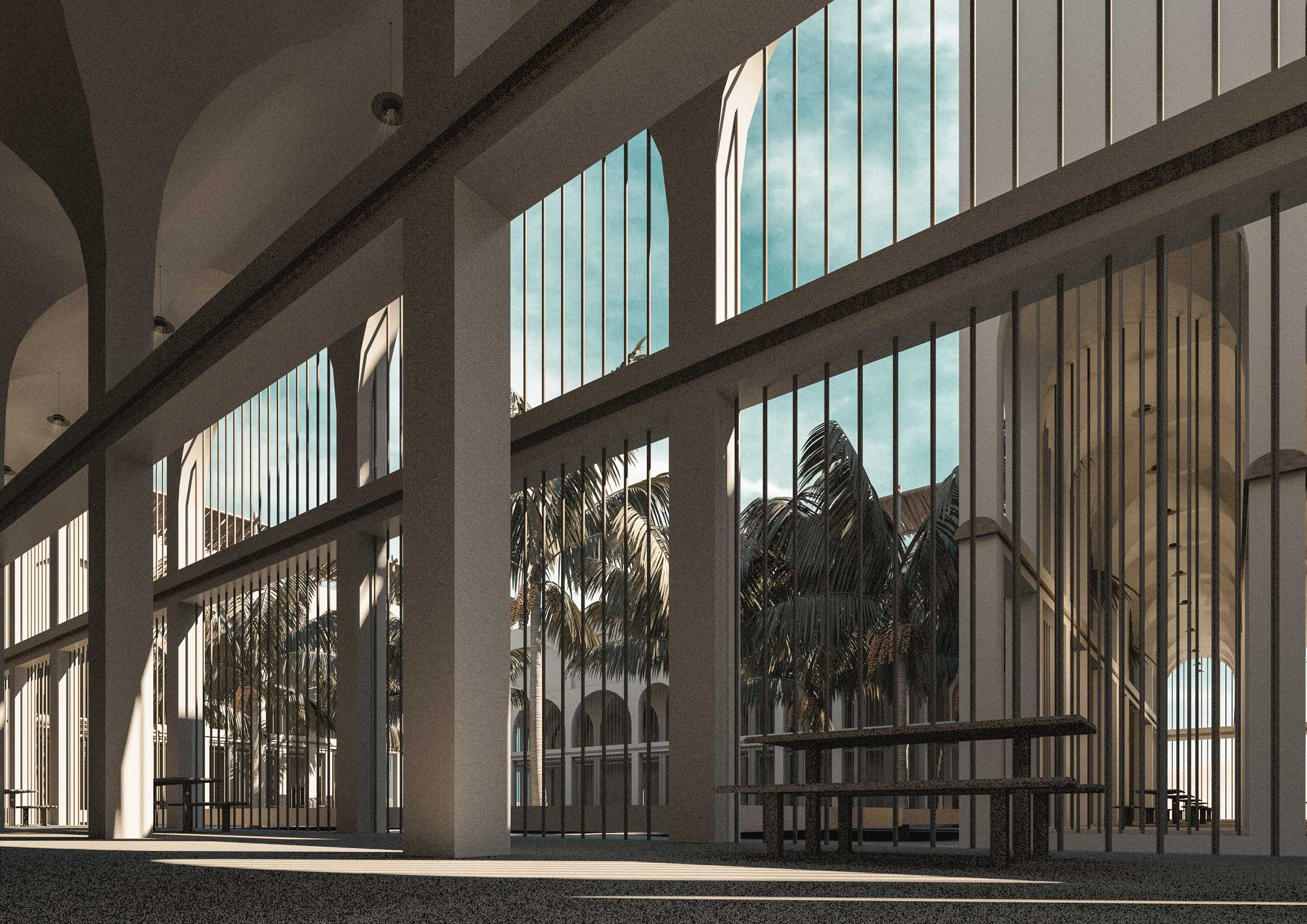 Following the trace of penitentiary architecture where it was intended to punish criminals to dehumanize them. It was essentially a cruel approach to reform prisoners but was it the solution! Dostoyevsky, who had been imprisoned himself, dismissed the efficacy of the practice: “Prison and penal servitude do not, of course, reform the criminal”. In addition, the prison cell revolved around the realization of the “Existenzminimum” sought by modernist architects. Prisons kept transcending to rock bottom, they were cloaks of invisibility for the state’s secret human foundations, and they still are.