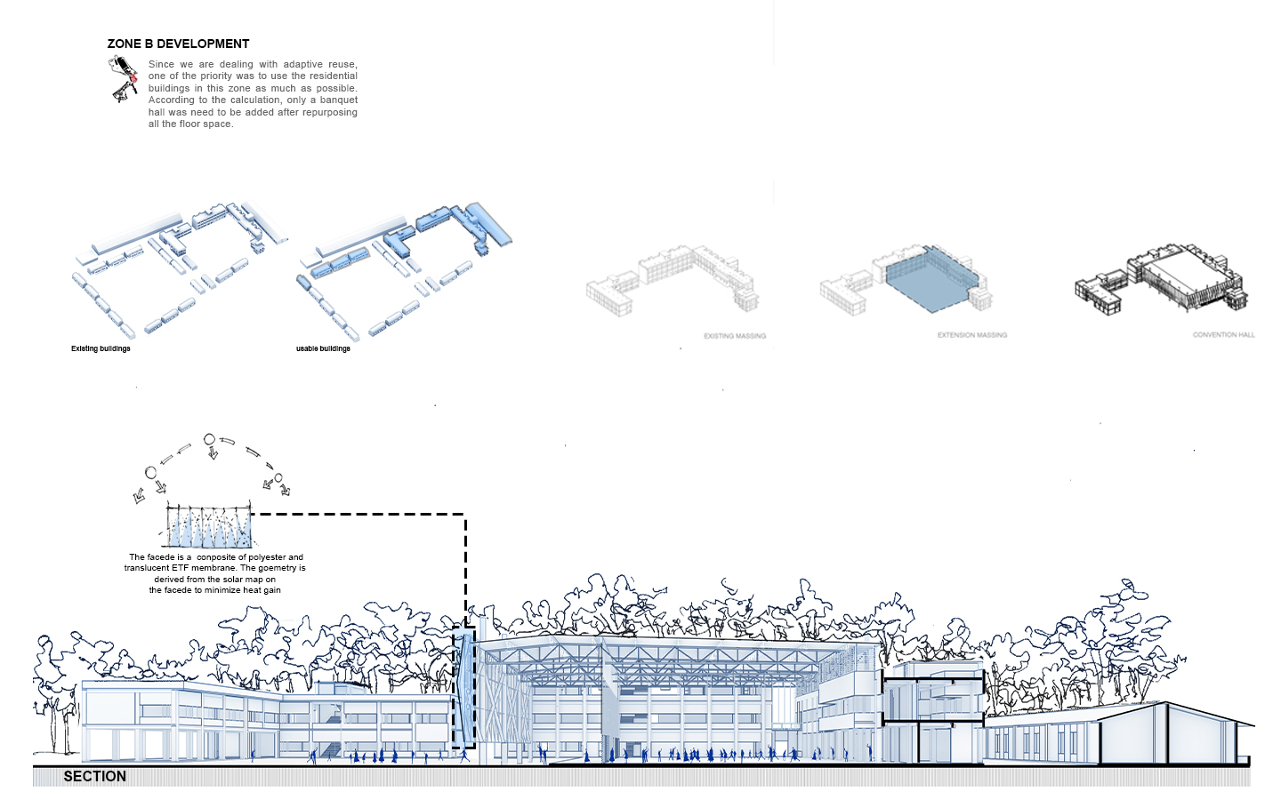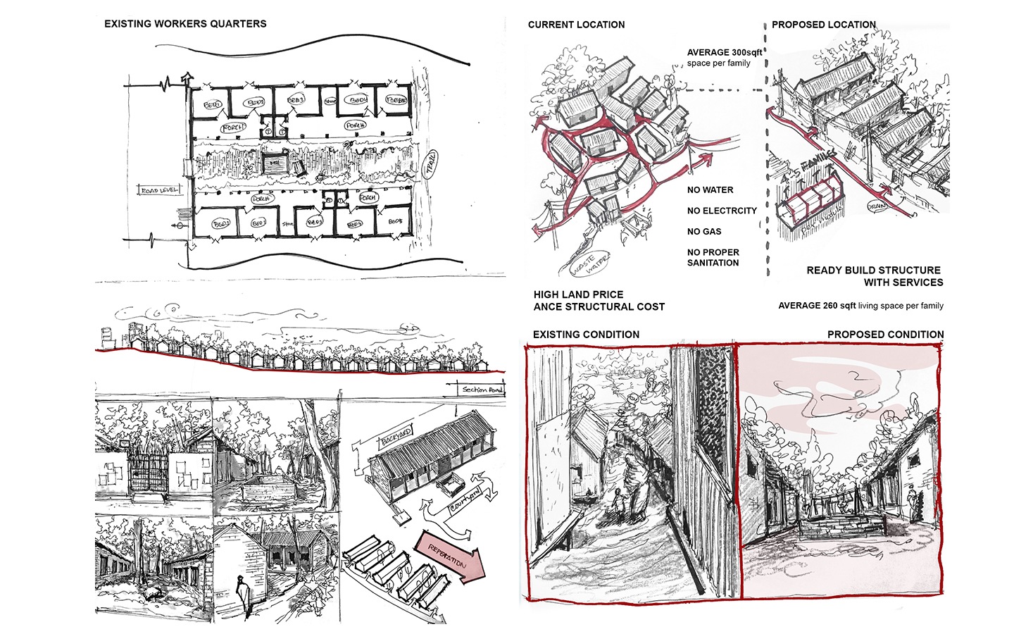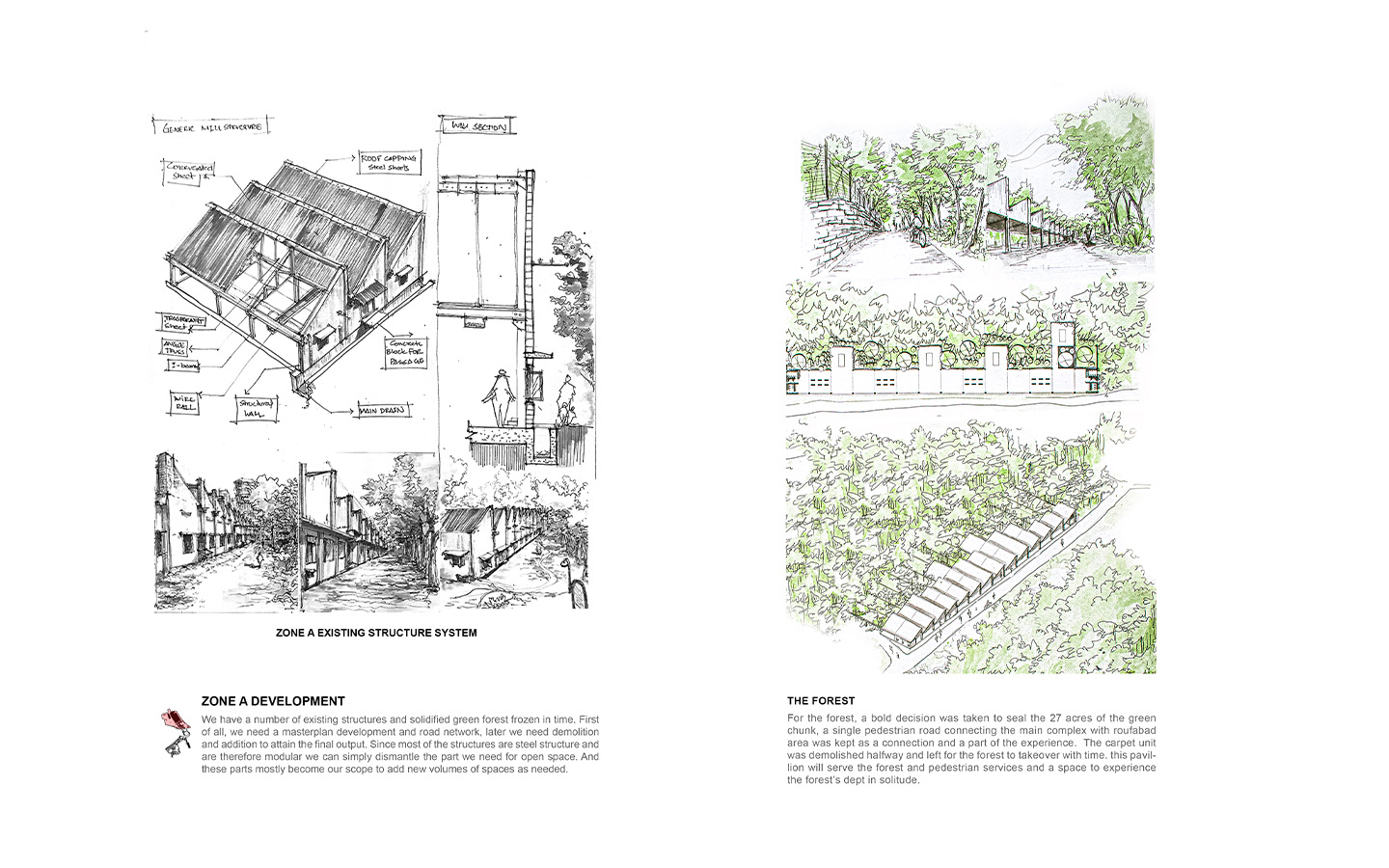 Amin Jute Mill is a government owned jute mill complex located in Sholoshohor, Chittagong. The mill was originally established by Maulana Amin, a Pakistani millionaire in 1954. Within 17 years the mill grew and eventually formed a large worker’s community making a local name for the site which it still carries ‘Amin gate’.After the independence in 1971, the site was taken as enemy land and went under the newly formed Bangladesh Government. The mill kept on running under the supervision of BJMC and the community continued to grow out of the site. In 2020, all government Jute mills were decommissioned and today a part of the 70-year-old site is abandoned. Soon after the decommission most of the workers migrated out and with the mills closed, the site is now quiet, lifeless, and purposeless. Although the complex was constructed outside of the city back in 1954, today the city expanded and the settlements around the site are surrounded from all four sides. Within this gray jungle, the site stands with 80 acres of breathing green topography. Now abandoned and with no plans declared by the government, the site is waiting to be taken over by the surroundings to construct residential and commercial buildings, robbing the neighbor of the only chance of having a green space in the context. Sholoshohor is an area where civil amenities and green open spaces for the public are absent. This gives the project the perfect opportunity to repurpose and rethink the area for public use. This project aims to revive this abandoned site with robust urban energy serving the surrounding neighbor’s needs through adaptive reuse and repurposing of the jute mill complex.