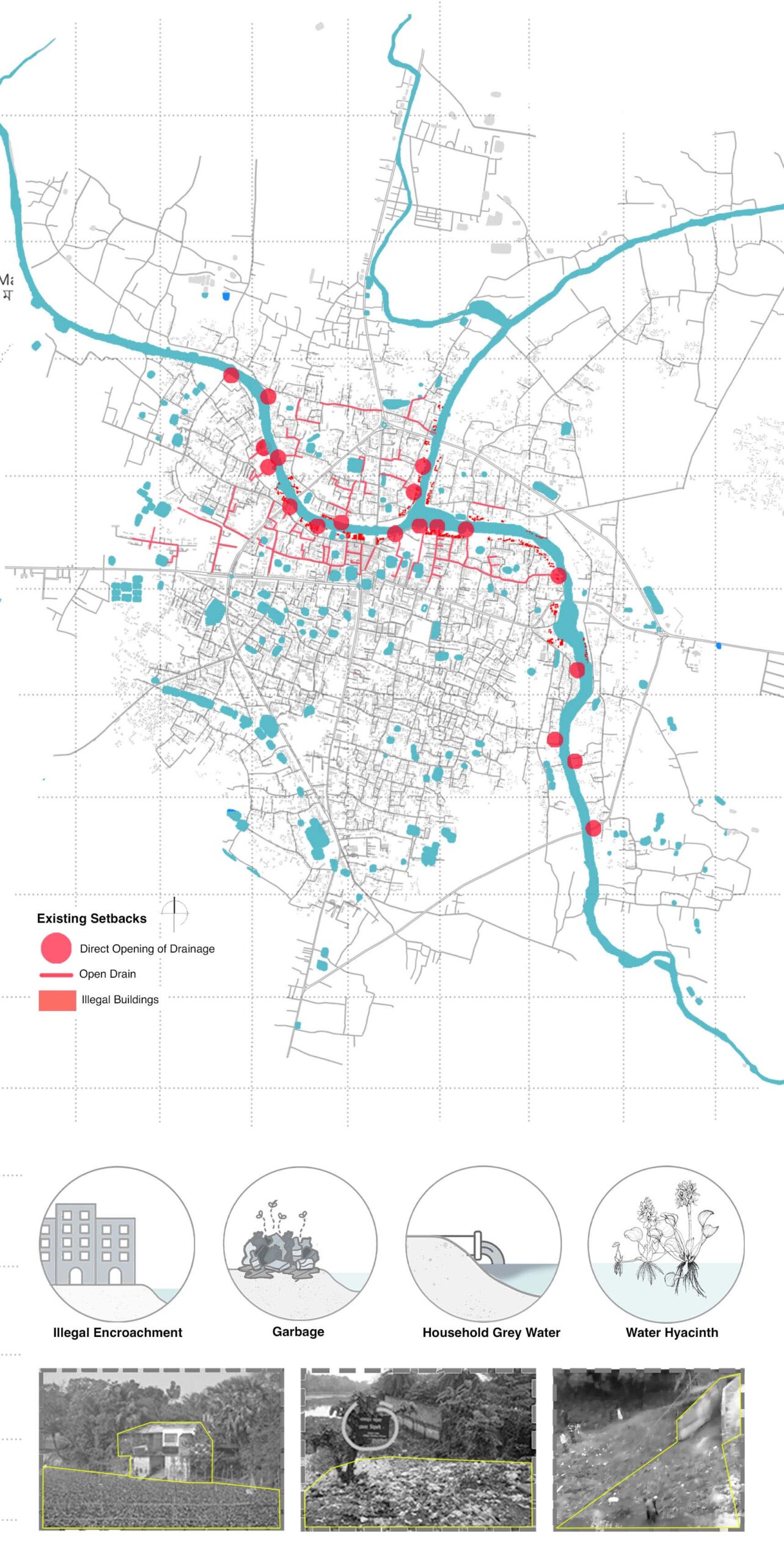 It is now evident that our roads and structures did not grow to respect our riverine landscape after the British Period. Gradually our priorities shifted; once dependent on the river, we forgot to take care of them. Urban development neglects the full potential of the surrounding rivers and only uses them as backyards, especially rivers with narrow widths. During the last 40 years, water pollution and riverbank encroachment have become so intense that our rivers are dying gradually.