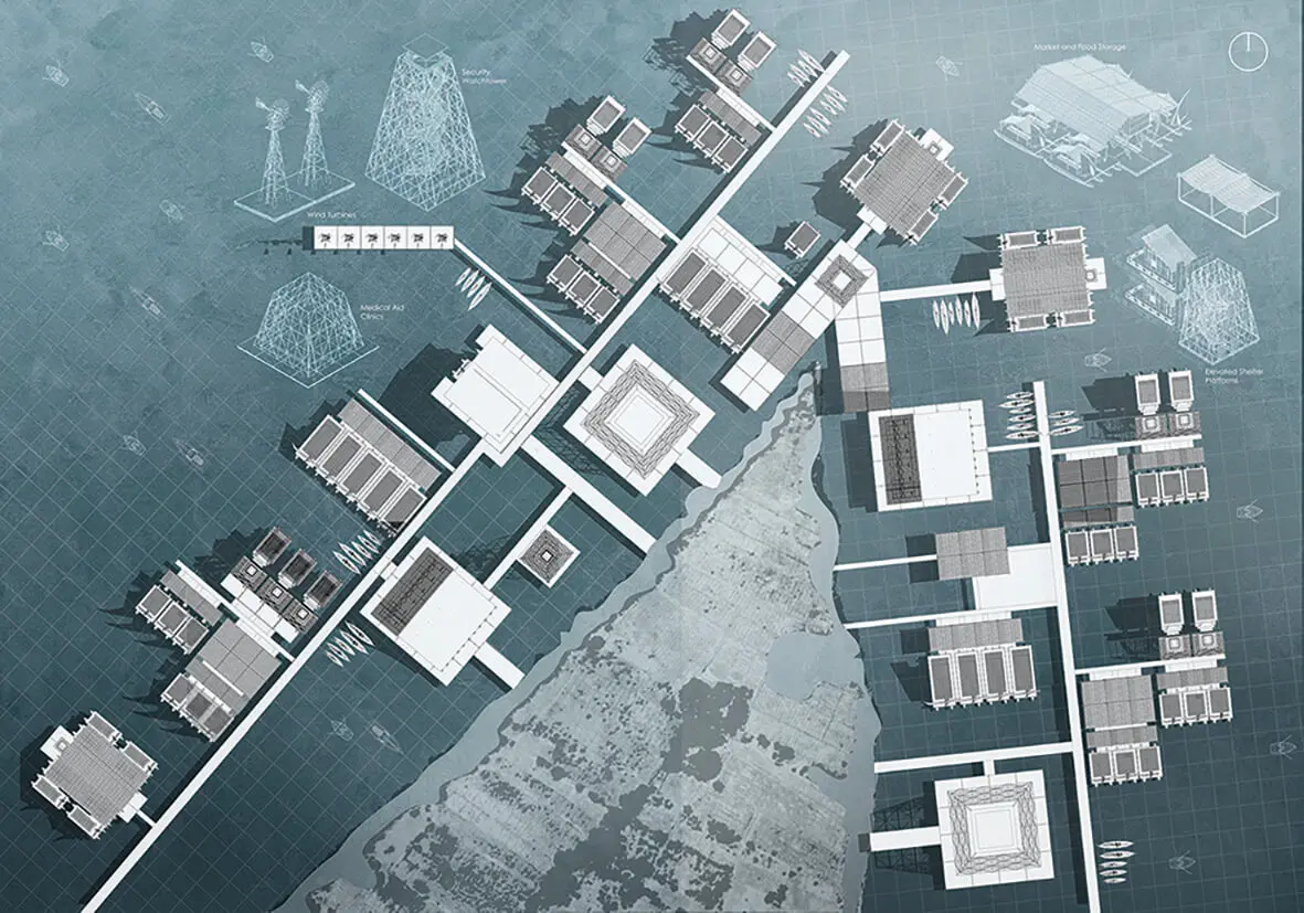 A mobile, floating settlement system along the Nile River in Sudan that provides safe, adaptable shelter and support networks for communities displaced by war and environmental risk. Drawing inspiration from local wooden boat-building craft, the project transforms the Nile into a habitable corridor, enabling mobility, self-sufficiency, and effective humanitarian response.