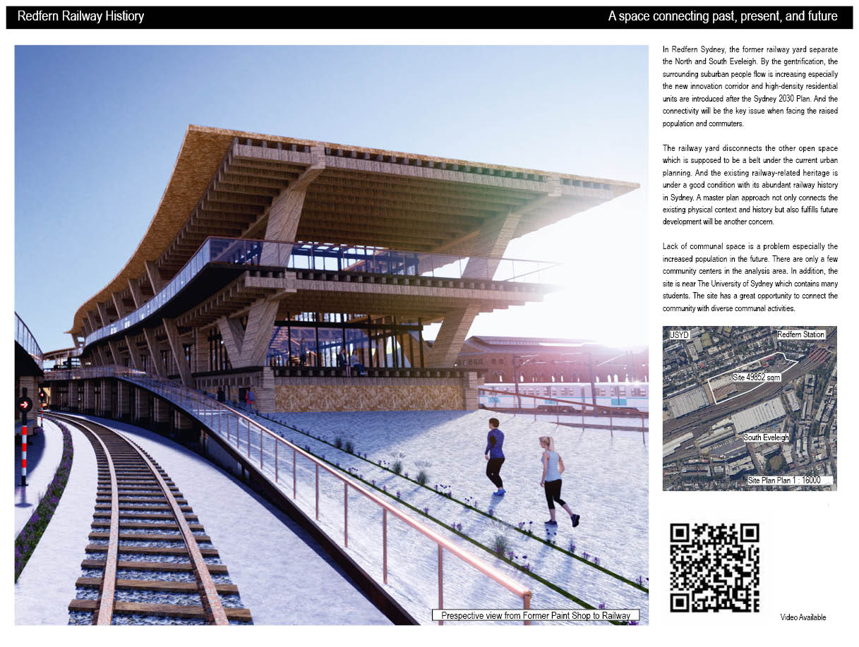 In Redfern Sydney, the former railway yard separate the North and South Eveleigh. By the gentrification, the surrounding suburban people flow is increasing especially the new innovation corridor and high-density residential units are introduced after the Sydney 2030 Plan. And the connectivity will be the key issue when facing the raised population and commuters.