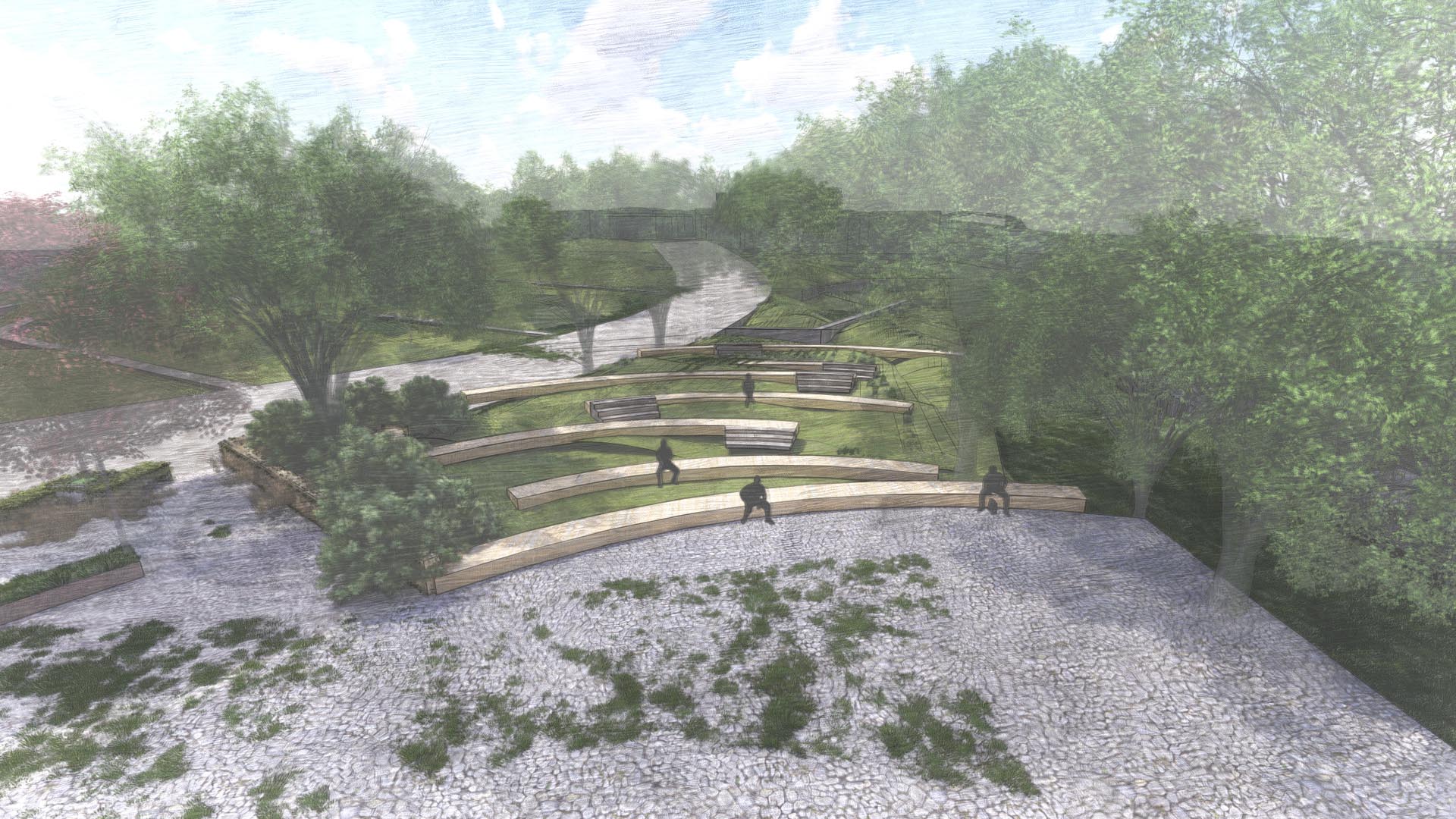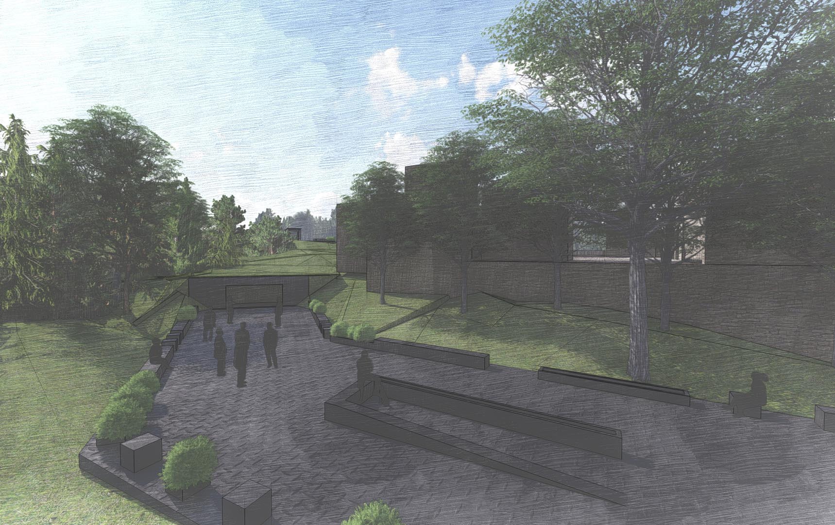 Thus, the area starts from the still existing main street of Kabul to the east into a distribution area with a visitor’s centre and a reception area that has two axes: