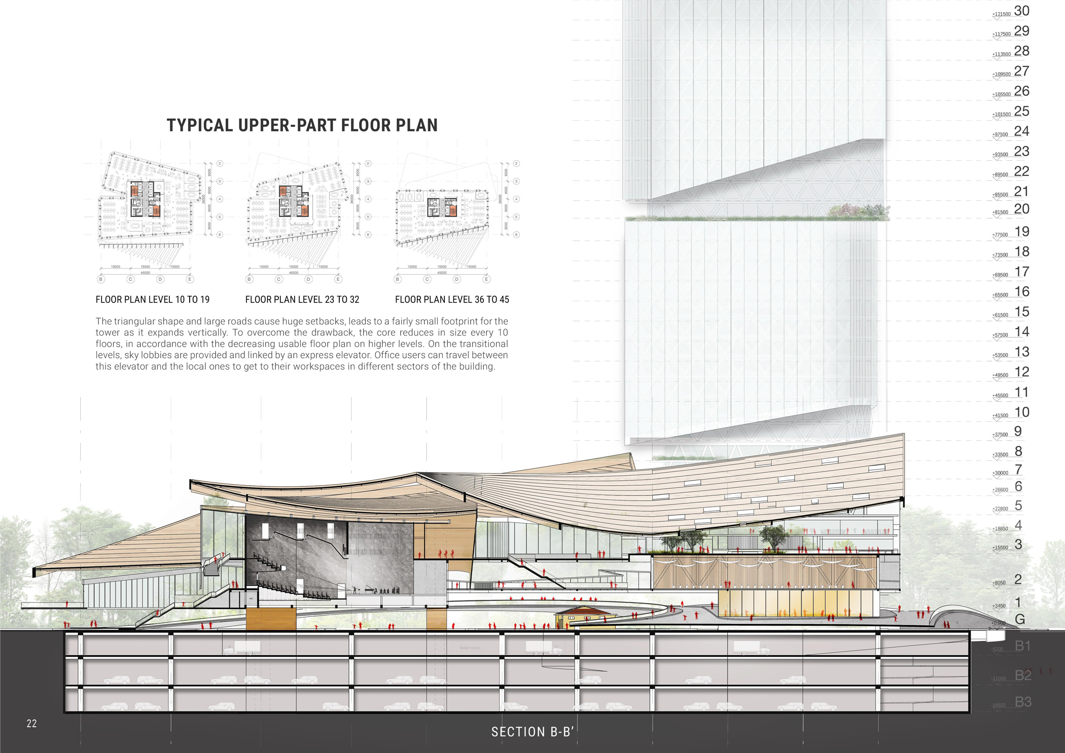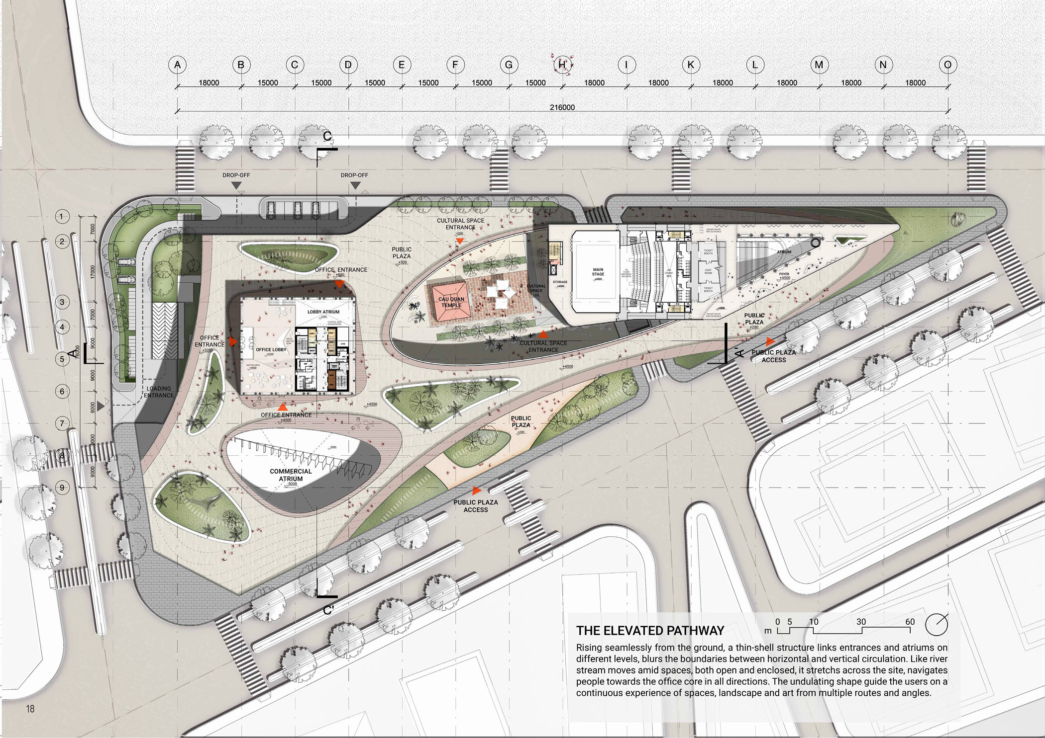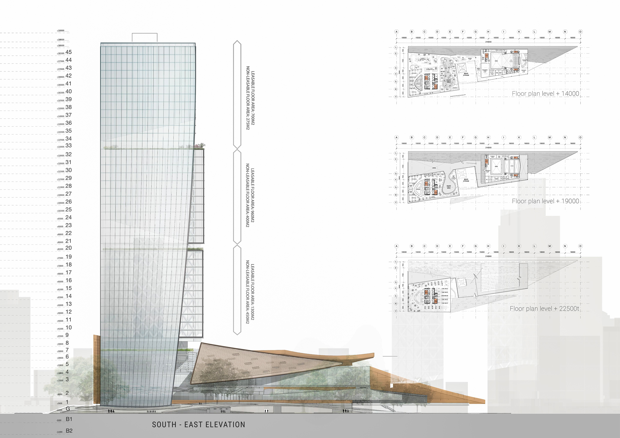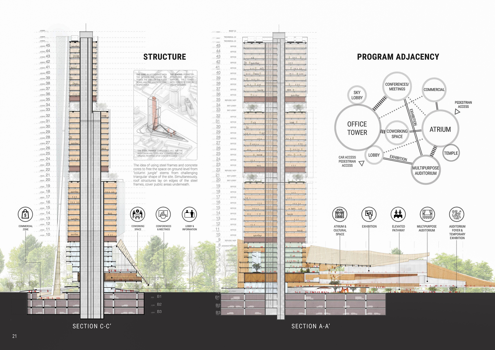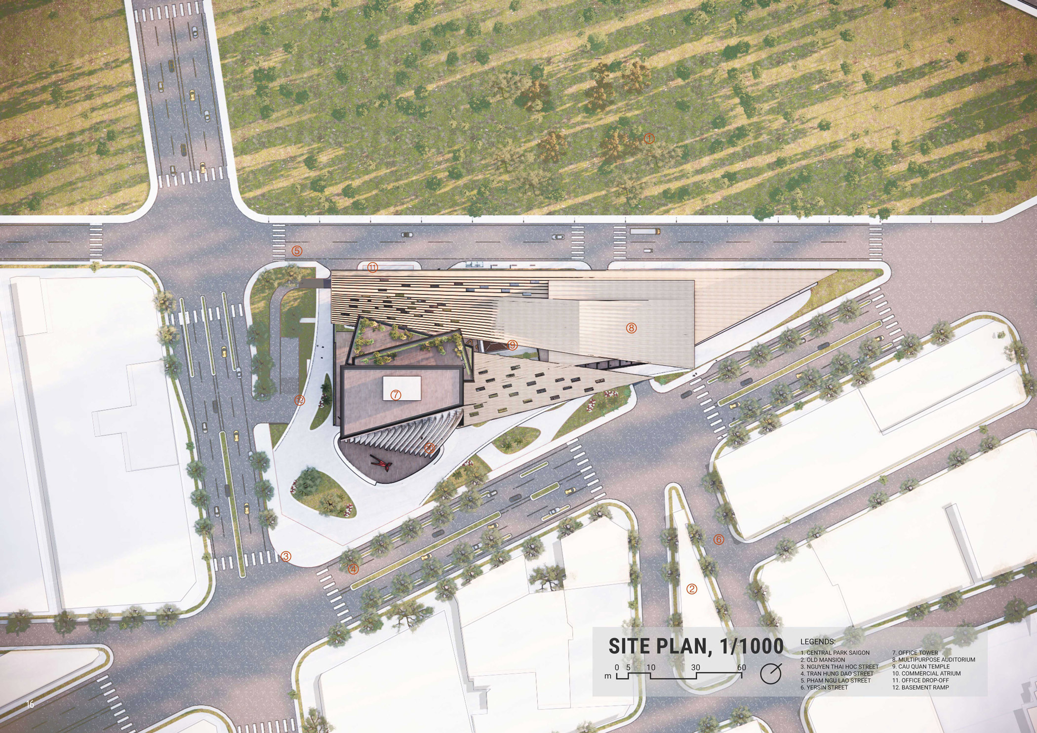 The project aims to revive the diminishing aesthetic atmosphere by integrating the temple into future high-rise development. The main idea is to restore the spirit of the cultural hub in the form of a “living museum”. Minimalism in practice, the mere existence of the temple against time brings a sense of timelessness. The cultural attractiveness can largely benefit the office tower since a lot of companies have had their offices in district 1 because of the historic background of the city centre. A building with an active witness of time in the middle certainly has its charm.