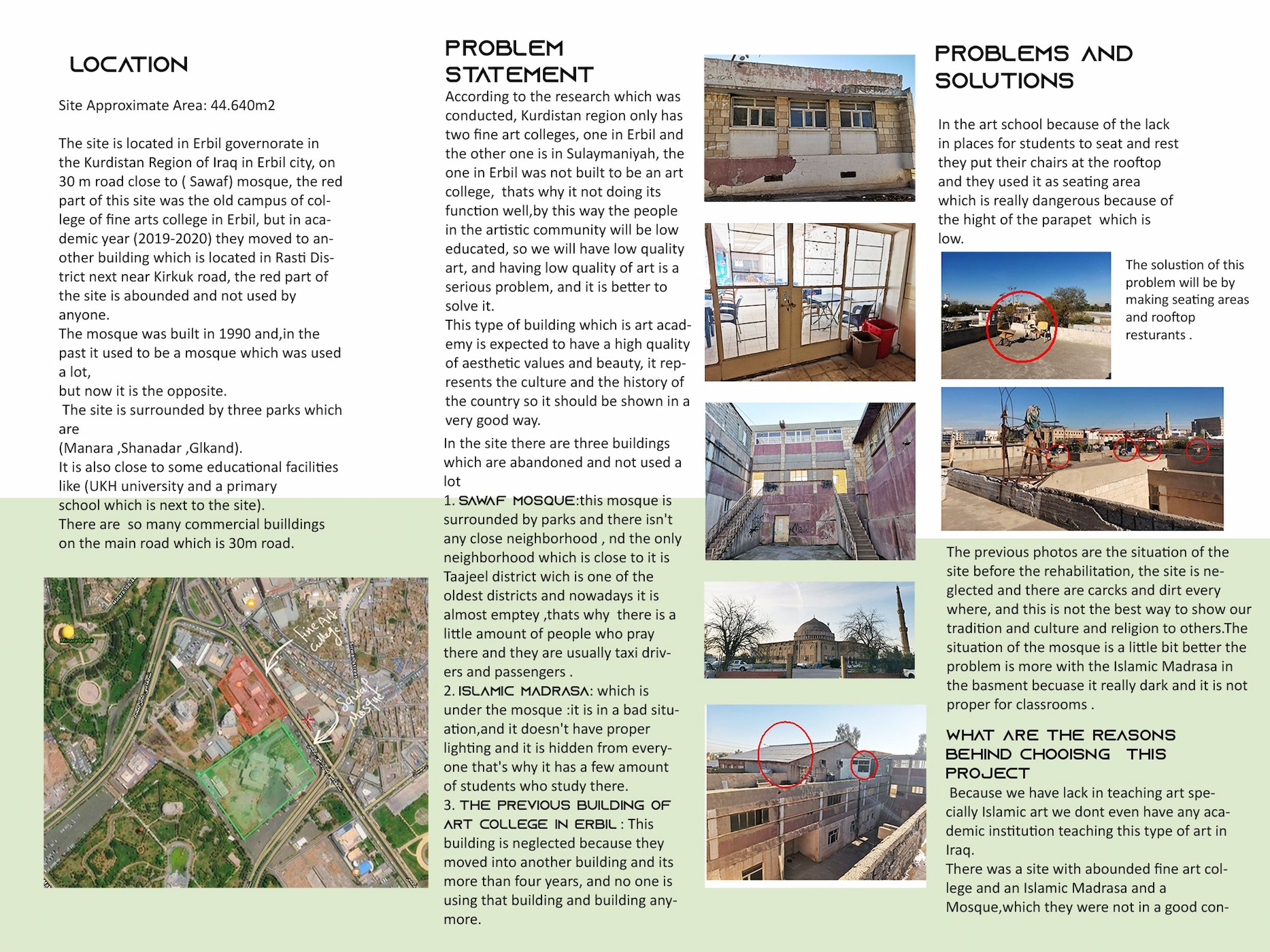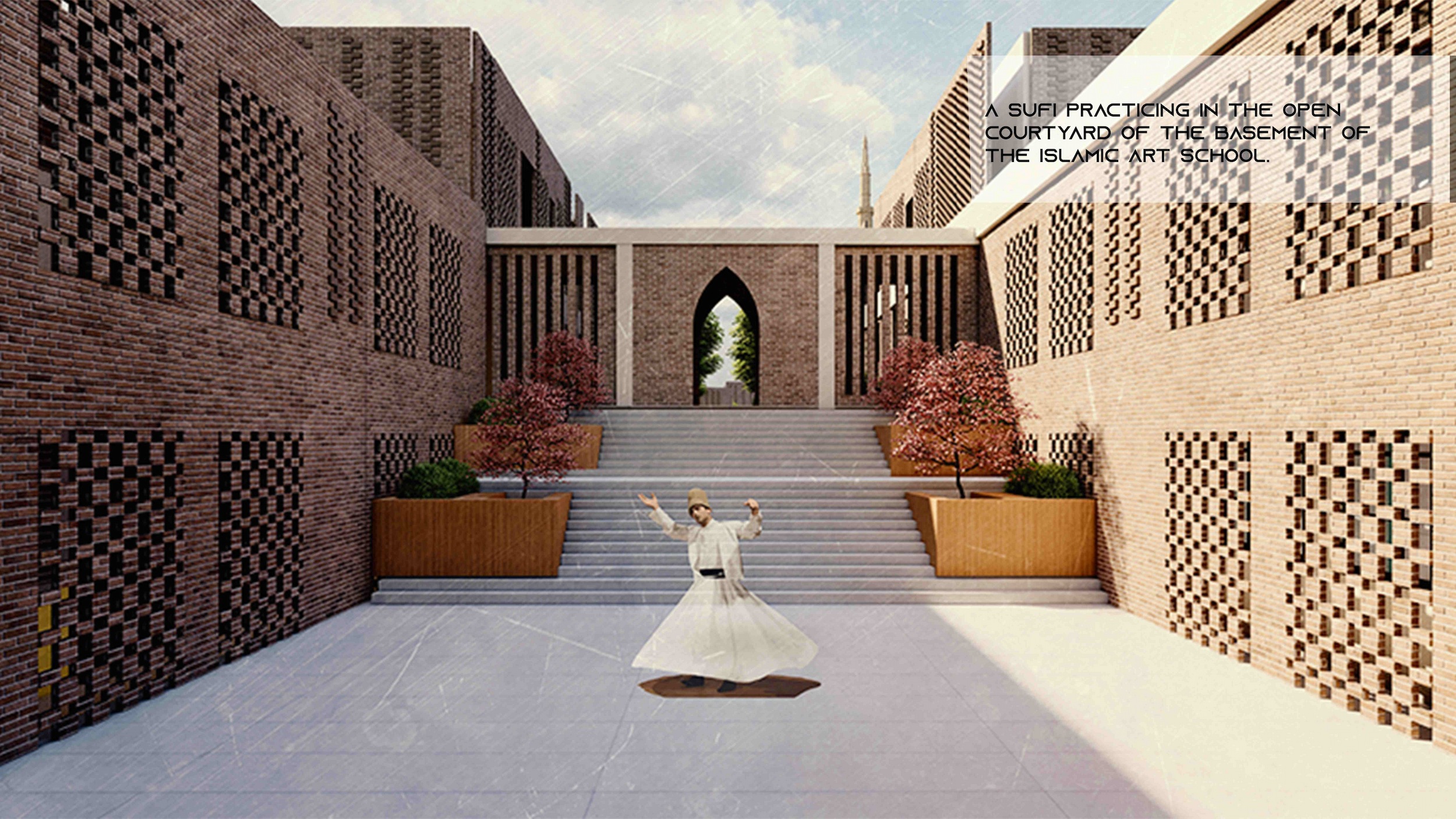 And this project will create an urban space which is not enclosed by walls, by this way the project will invite and welcome the people to enter and explore the different functions inside, and when they go around they will see different types of knowledge (The theoretical knowledge which is taught in Islamic Madrasa, and the practical knowledge which is taught in the art academy).