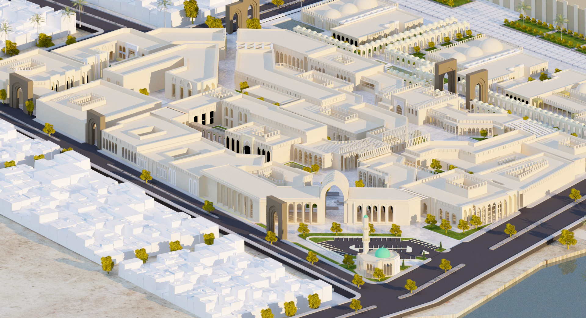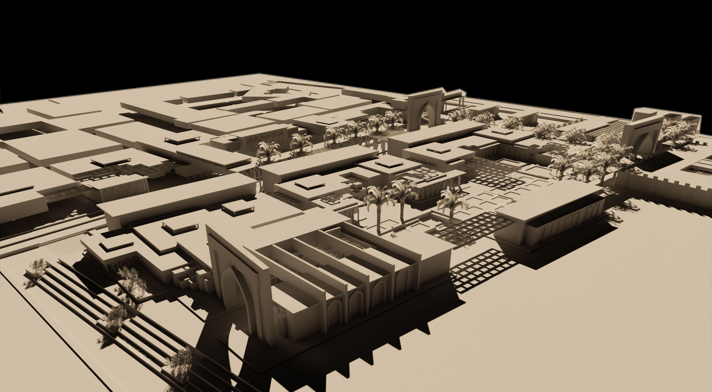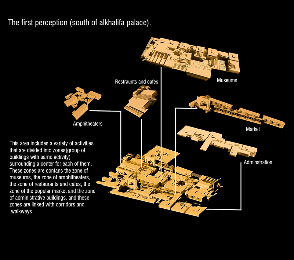 The project is divided into two levels The first level is providing a site planning for the 4*4km new generated Abbasid city (general planning contains the city residential sectors, city centre, heretical monuments tourism path ) and the second level is providing a design (detailed) for 360000m from the centre of the city (the heart of the city in the north and the south al khalifa palace).