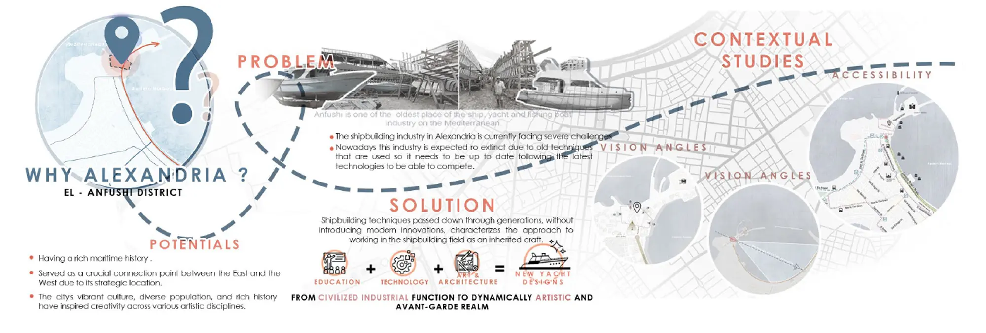 MISSION STATEMENT: A naval architecture academy and convention center that aims to re-brand Alexandria as a strong maritime hub and to transform the inherited shipbuilding craft into a huge industry with creativity and innovation to build a new economic base.