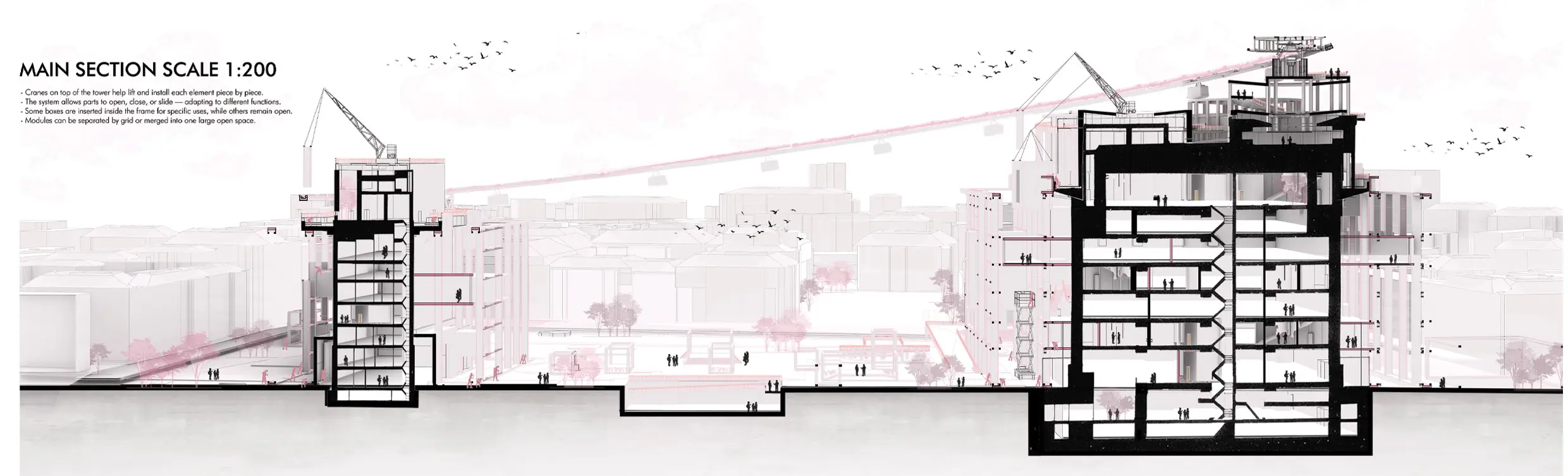 Instead of erasing these structures, the project proposes a wiser and more human approach: revival through reuse. By preserving the towers and activating them with new layers, the design transforms symbols of fear into platforms for social, cultural, and ecological regeneration.