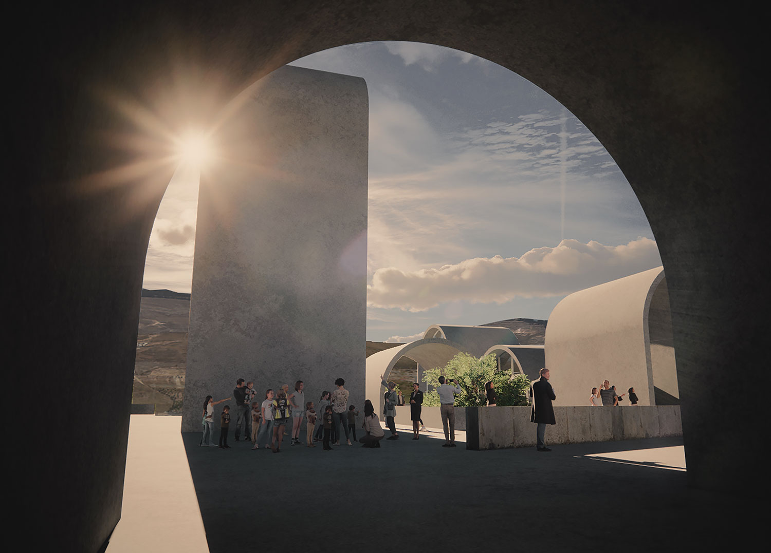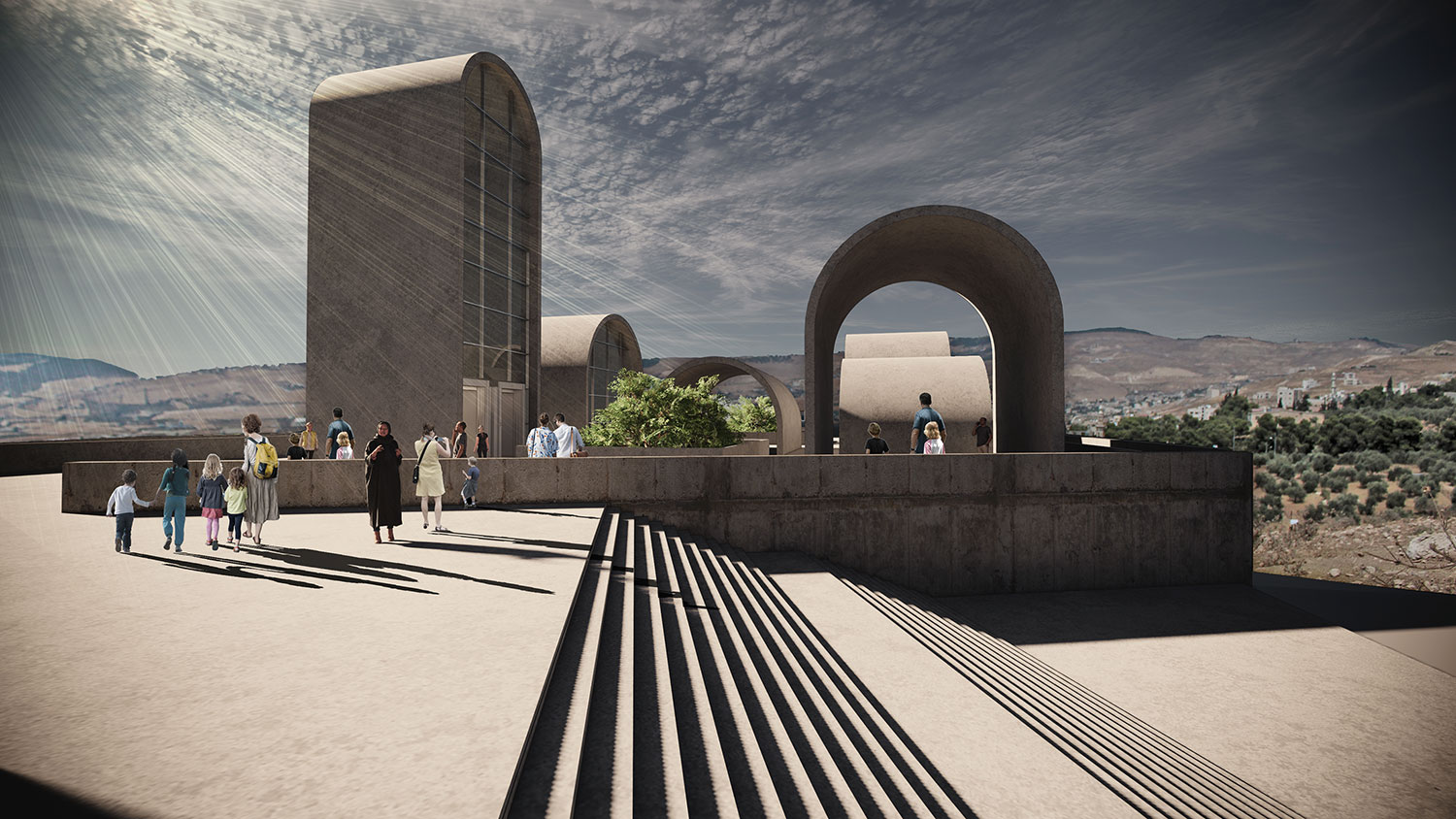 Memories coming from Archive Node, are dispersed across three courtyards, each of which deals with a different aspect of Palestinian Anthropology:culture, social, and linguistic. Vaults in the Garden of Exile are protecting the memories underneath.
