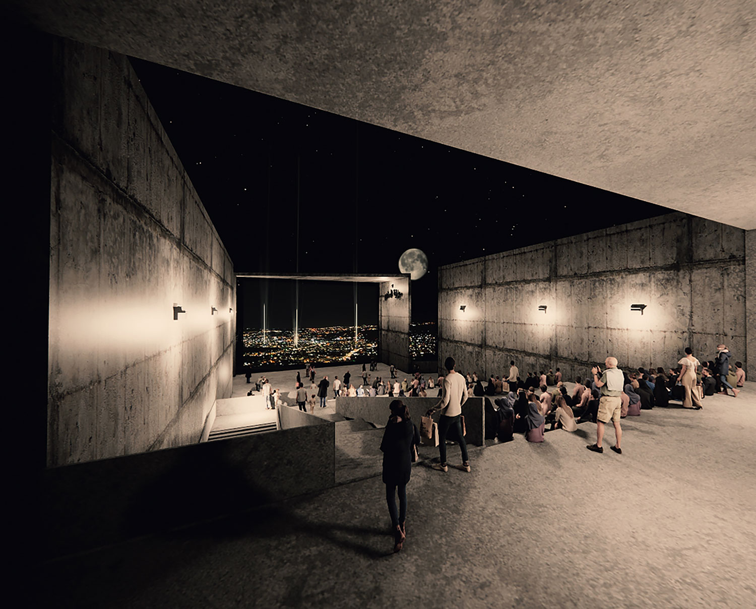 A light beam and 20m wall writings inform visitors about the location of this memory.