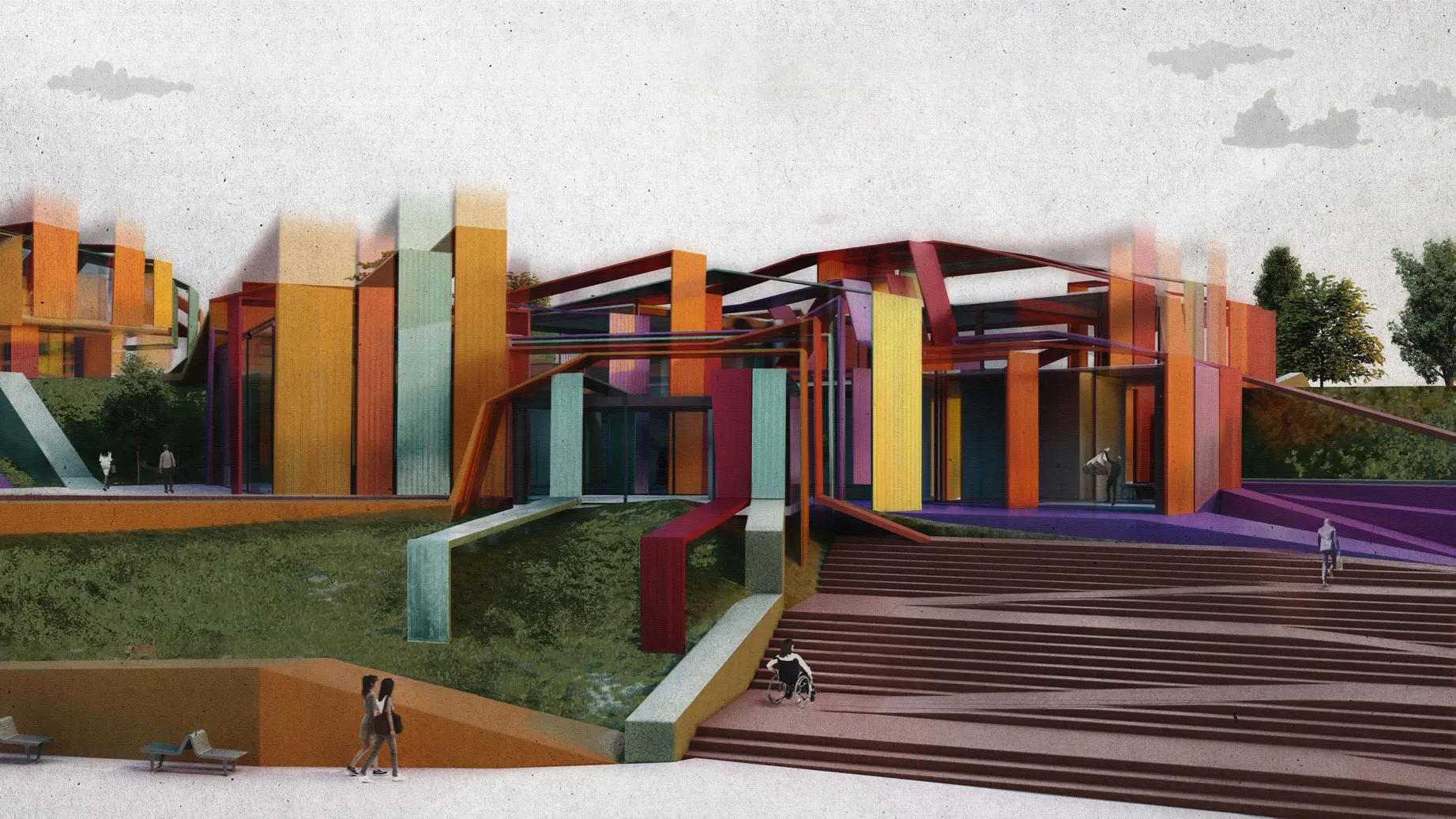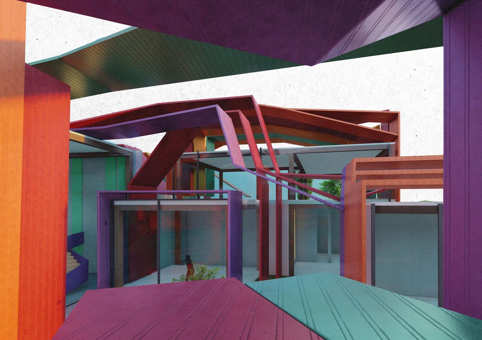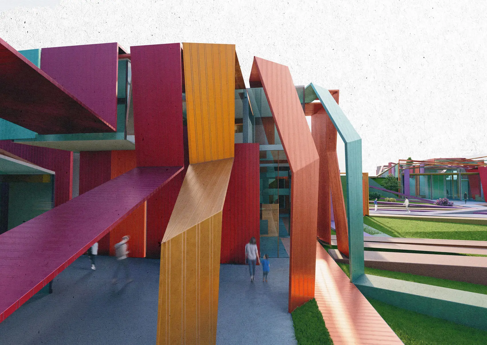 The “Resonance” project focuses on designing a Visual Arts Center in Tehran with an approach to interactive architecture a pursuit to create a space where art, humans, and the urban environment engage in a living dialogue. Since the goal was to establish a level of interaction on a larger scale, certain elements were defined in the architecture of this project, referred to as “threads.” The main structure of the project is composed of these intertwined threads, some of which move dynamically and linearly. These moving elements, or “flaps,” respond to ambient sounds, generating a dynamic rhythm, and the skyline of the project changes multiple times throughout a 24-hour cycle.