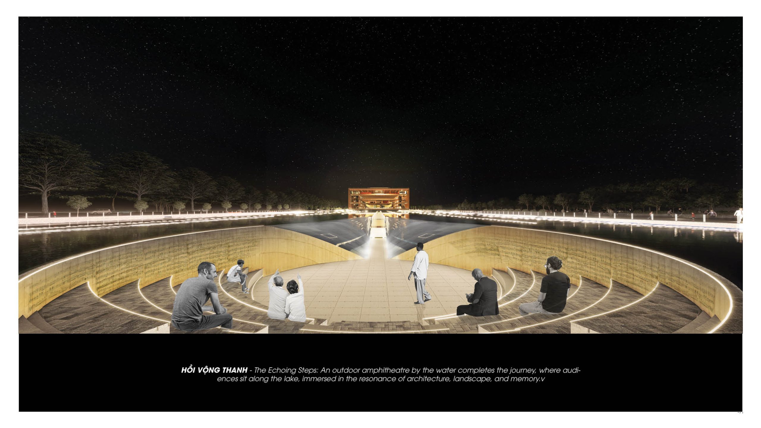 By reviving a forgotten historic site, Gieng Nuoc Park — centrally located and extending to the Tien River — becomes the ideal foundation for a new theater: a place that honors memory, connects communities, and affirms cultural identity. The project redefines cultural space in the city while rekindling collective memory and reconnecting people to Southern intangible heritage.