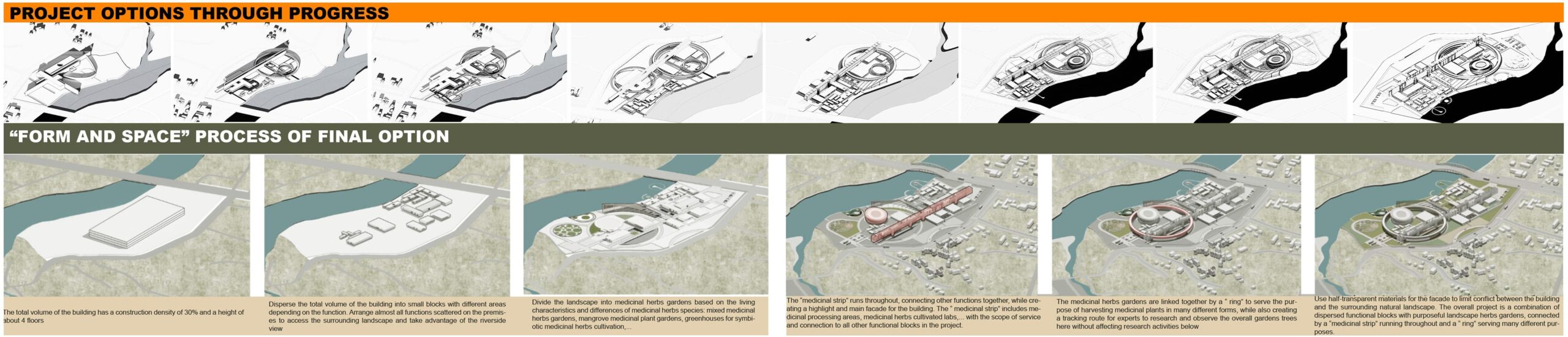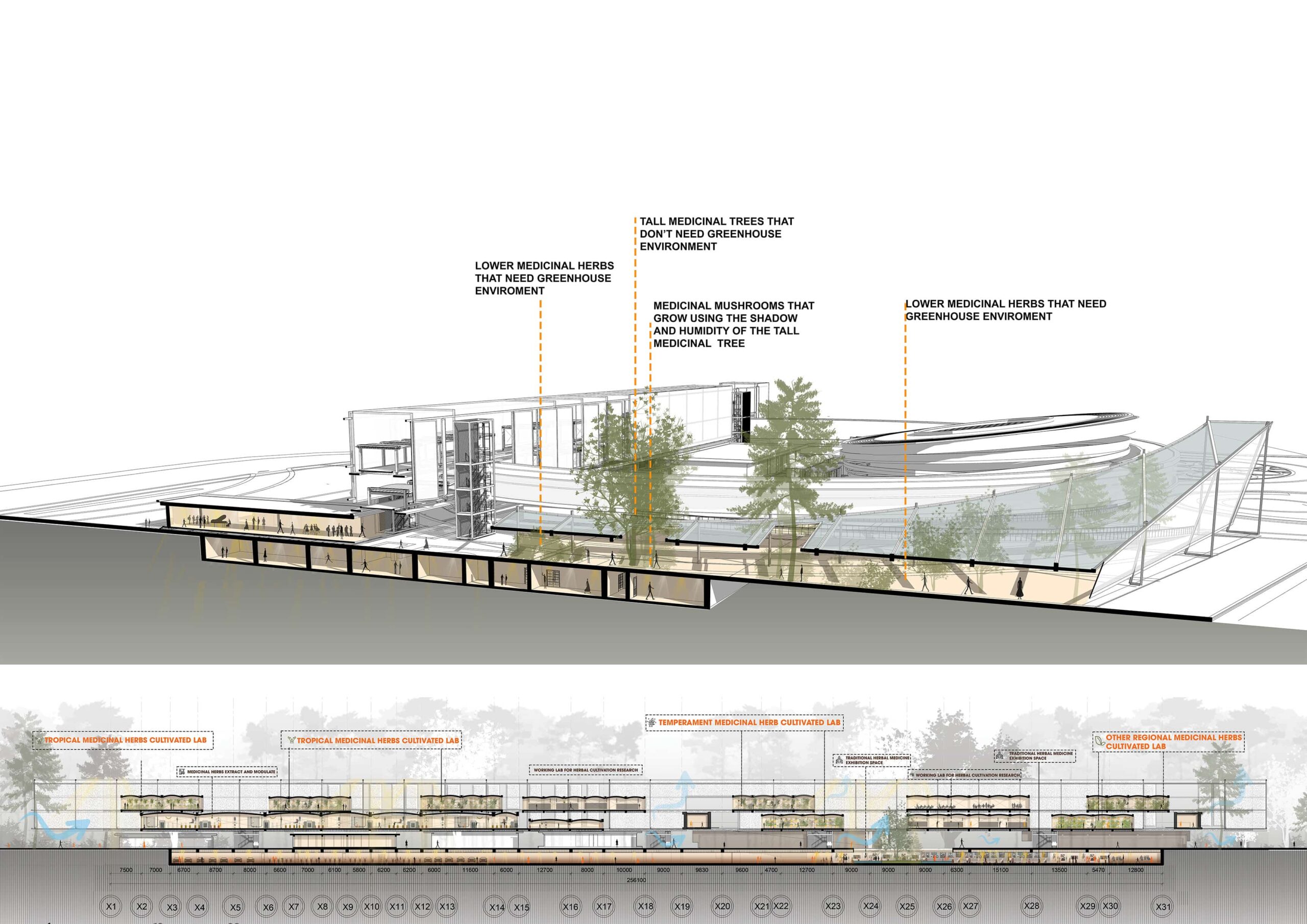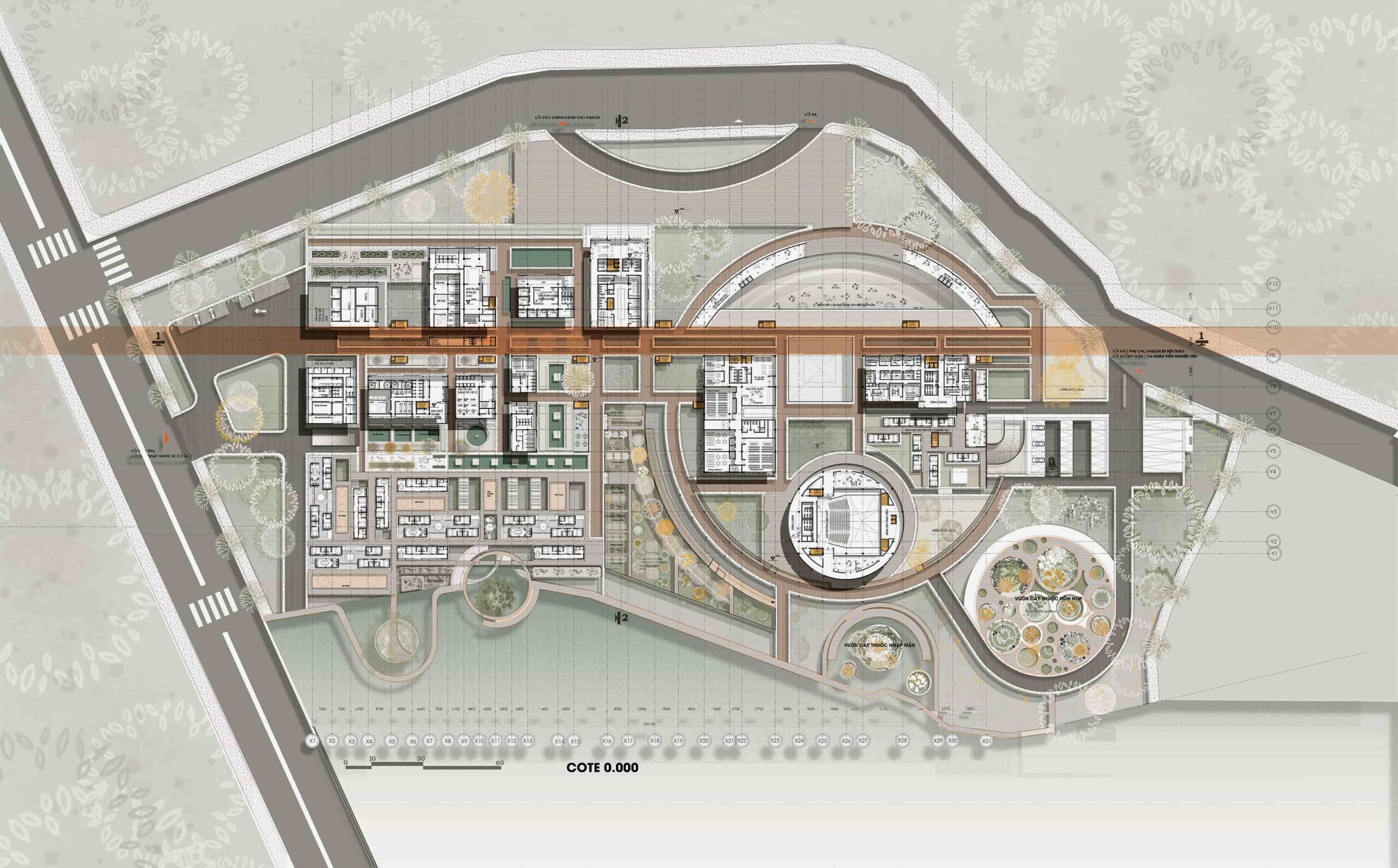 Therefore, the general vision is to design a center specializing in research on traditional medicinal plants and herbs and recreating precious, lost remedies, and conducting clinical trials to apply the remedies to patients. Moreover, the center complex has models of “healing” therapy and health care spaces typical of traditional herbal medicine and pharmacy methods, each treatment method helps people recover and healing both physically and mentally.