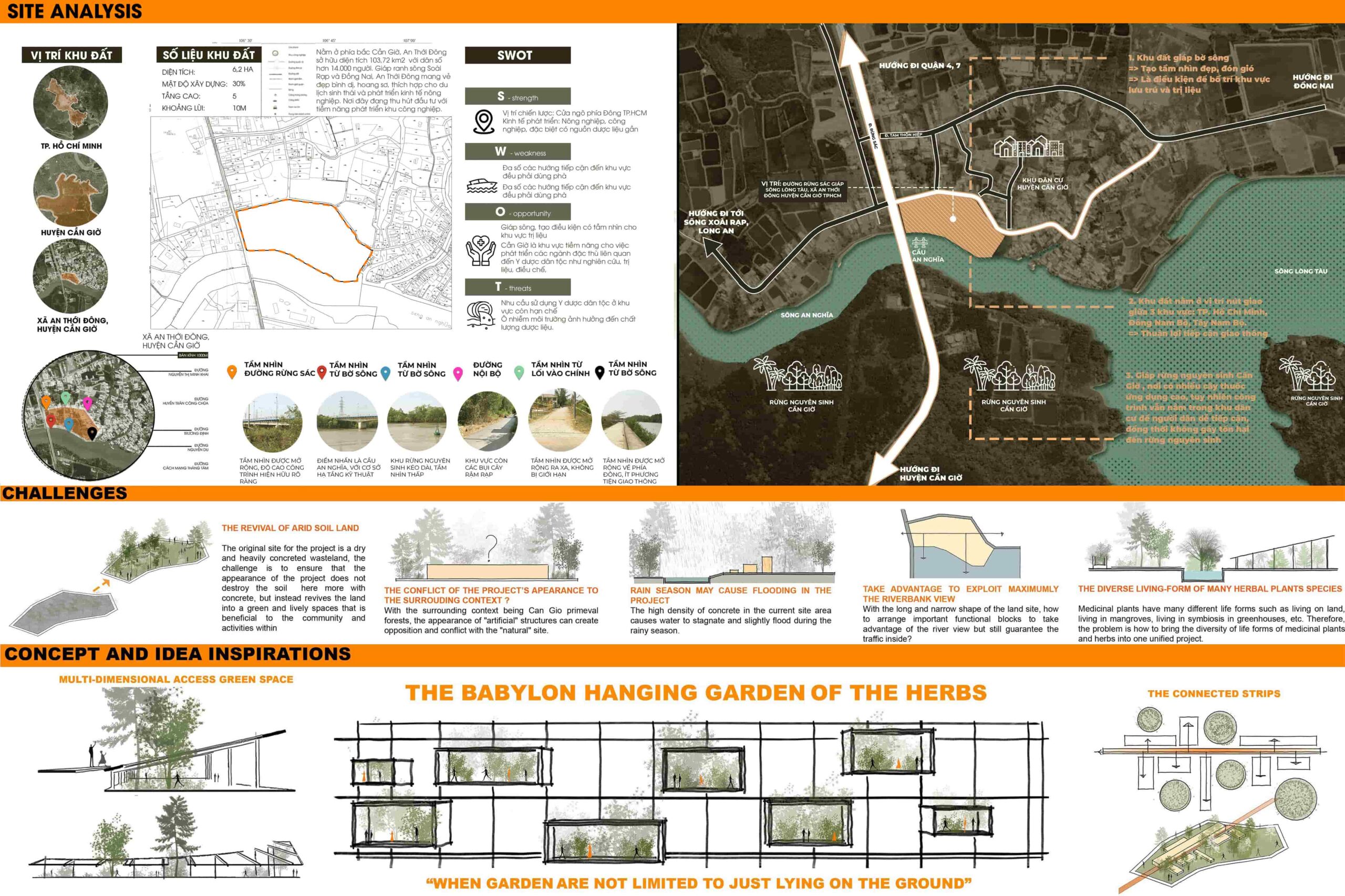 “ Like a hidden gem among the Can Gio vast primeval forest, "The Babylon Hanging Garden of the Herbal" is a place where medicinal plants and herbs gardens with many different life forms are the main characters of the story, arranged in a variety of multi-dimensional approaches, not limited to just lying on the ground. The project aims is to “ Revitalizing” an arid soil land, not just the physical condition, but also in spiritual and atmosphere aspects.”