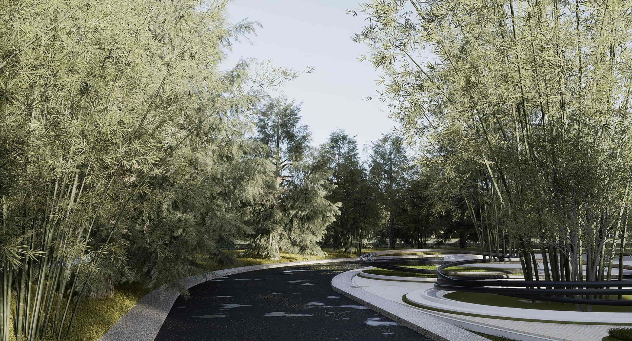 4 main types of medicinal plants and herbs gardens representing 4 basic life forms of local medicinal plants method, arranged into a unified project through different architectural forms, and connected by a round path which is called “ The Ring”: